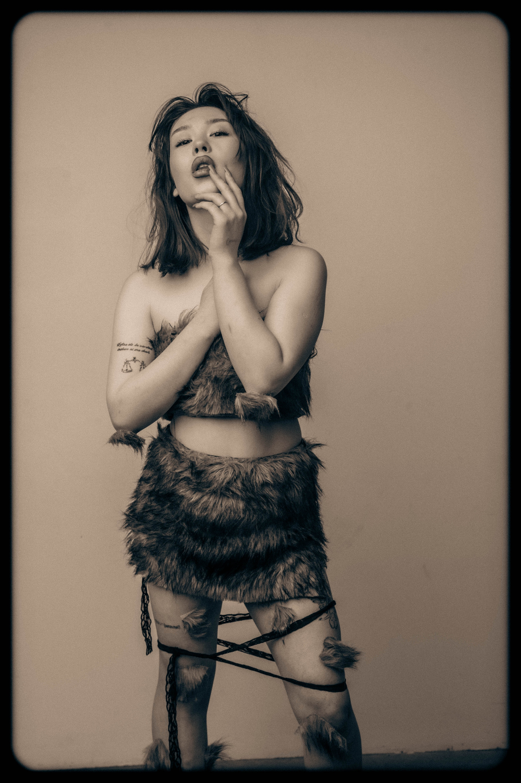 Множественные небольшие тату на всем теле.